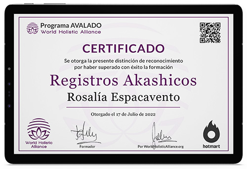 Una vez que concluyas la formación, podrás descargar tu certificado personalizado con tu nombre, avalado por WHA – WORLDHOLISTICALLIANCE.ORG, sin ningún costo extra. Ingresarás en el listado oficial online de alumnos certificados WHA.